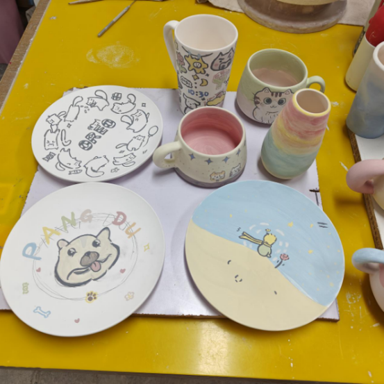 活动现场,每一件作品都承载着教职工的巧思与心意,每一笔色彩都寄托着对生活的热爱与期许。大家一边创作,一边交流,在欢声笑语中增进了彼此的情谊,感受到了集体活动带来的幸福感。三个批次的活动有序衔接,每一位参与教职工都完成了属于自己的陶艺作品,看着亲手绘制的盘子、杯子,脸上洋溢着满满的成就感。活动尾声,大家纷纷展示自己的作品、合影留念,定格下这段充满乐趣与温暖的时光。