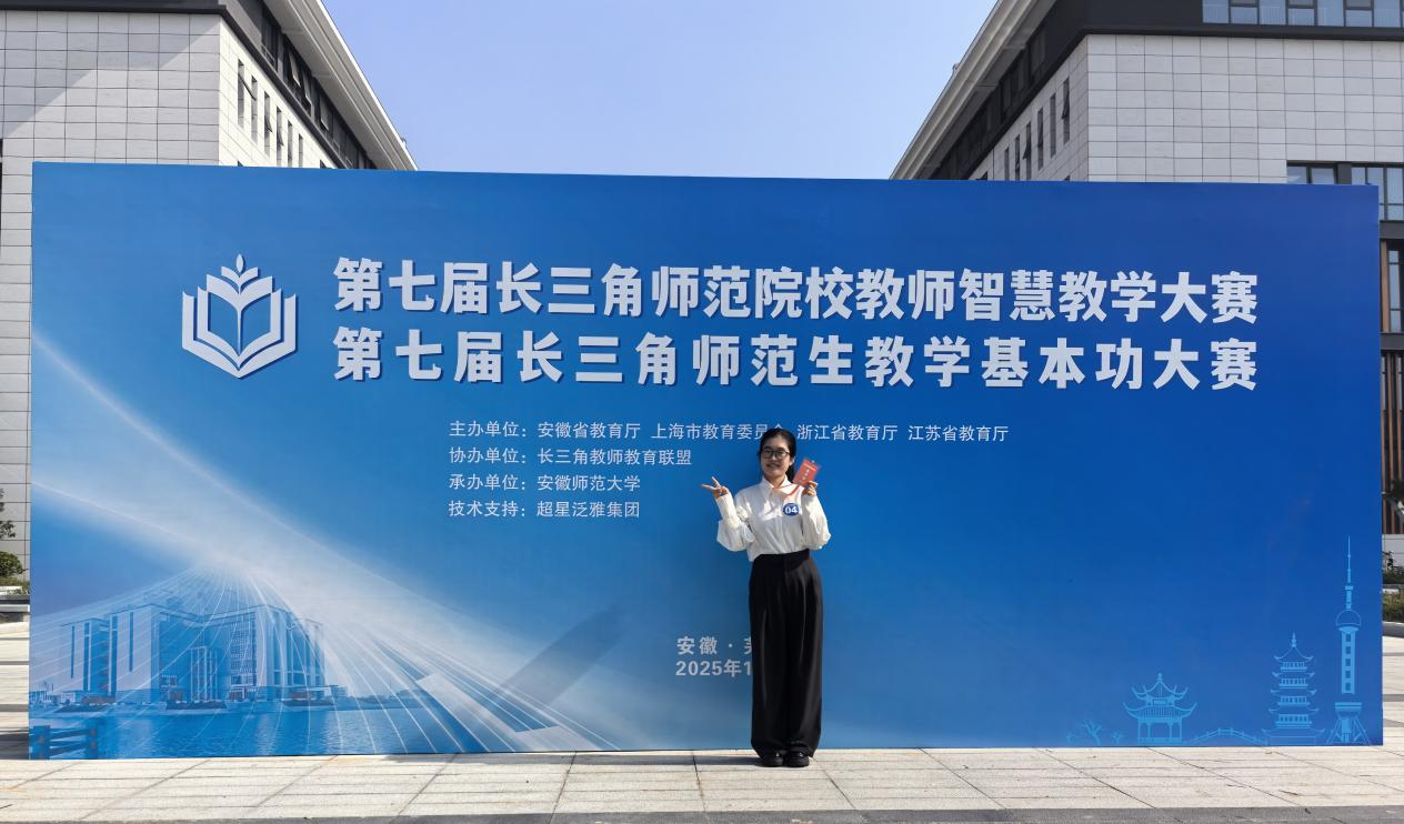 2025年11月15日,第七届长三角师范生教学基本功大赛在安徽师范大学圆满落幕。该赛事由沪苏浙皖四省市教育厅联合主办,规格颇高、竞争激烈。明升MS88官网2023级数学与应用数学专业的徐智敏同学,历经校内多轮遴选与安徽省师范生教学技能竞赛的严苛角逐,以全省一等奖的佳绩跻身长三角赛场,最终凭借扎实的专业功底与出色的教学表现力,斩获中学数学组三等奖,为校争光!