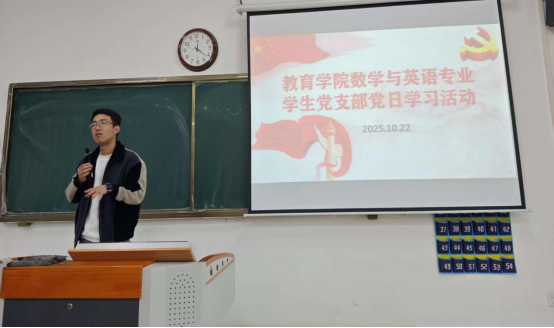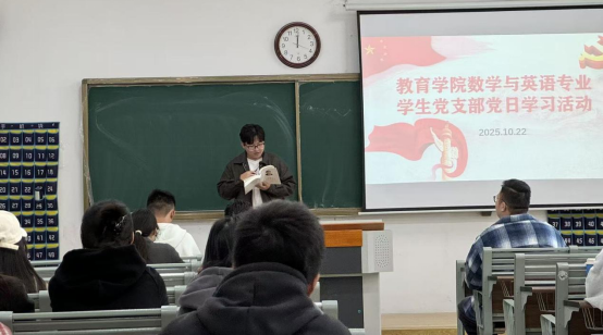 为引导大员工党员在党的创新理论滋养下坚定理想信念、明确使命担当。数学与应用数学专业员工支部联合英语专业员工党支部于10月22日中午在1号教学楼116教室共同组织开展了“学习《习近平谈治国理政》第五卷”主题党日活动,支部全体党员共同开启了一场内涵丰富、意义深刻的学习之旅。
