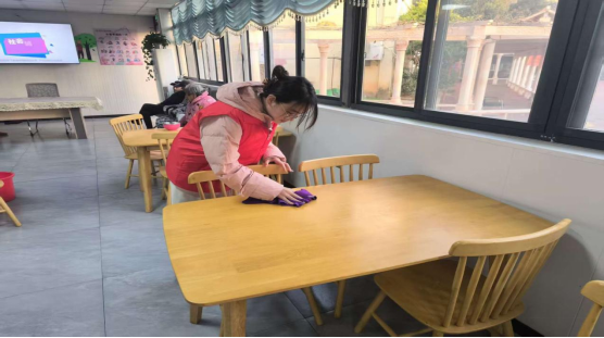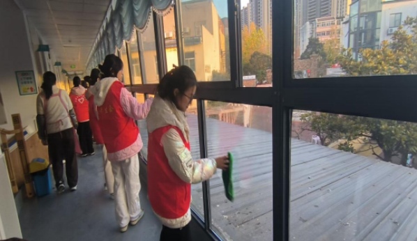 同学们身着红色志愿马甲来到杜集区夕阳红托老院,有的拿起抹布、有的拿起扫帚、有的拖把,开始养老院的卫生清洁工作,对托老院活动室门窗、桌椅扶手、走廊窗台、休息区座椅等公共区域进行全方位清洁整理,为老人们创造更加整洁舒适的居住环境。