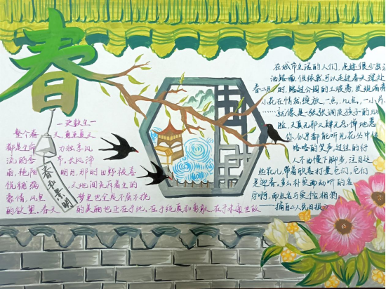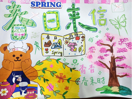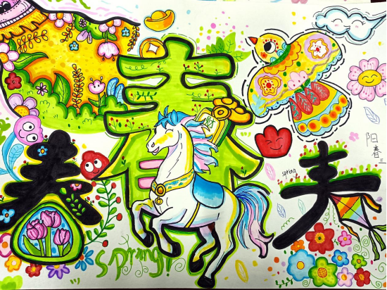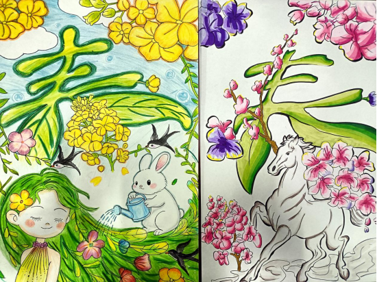“一笔春色”活动要求同学们以“春”字为创作核心,可以利用春天的各种花草植物进行艺术创作,且作品要有原创行、内容积极向上。从收集到的作品看,同学们在创作中构思巧妙、创意新颖,他们或将“春”字笔画化作柳枝、桃花、飞燕等春日意象;或以渐变撞色铺陈底色,让“春”字与繁花、绿草共生,尽显色彩层次;或将学子的青春情怀融入字间,点缀风筝、萌趣图案,传递青春气息;还有一部分作品还采用了环保材料创作,传达了环保、绿色的理念,贴合了“春”字的主题与教育情怀。